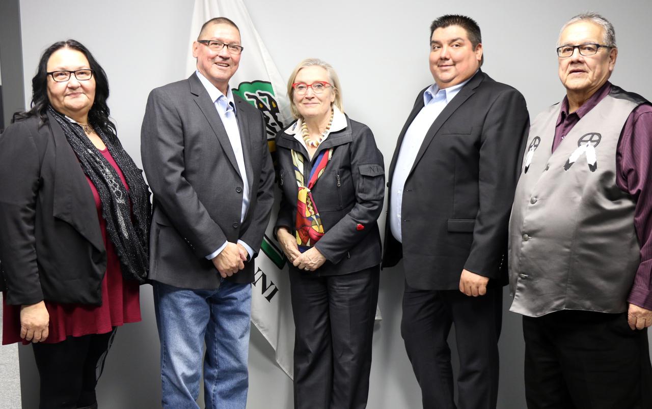 La communauté de Pikogan recevait une invitée de marque aujourd’hui alors que l’honorable Carolyn Bennett, ministre fédérale des Affaires autochtones et du Nord (AANC) était de passage dans la communauté. C’est dans le cadre d’une tournée régionale que la ministre Bennett s’est arrêtée à Pikogan quelques heures pour visiter la communauté et les nouvelles infrastructures financées l’automne dernier grâce au « Fonds d’infrastructures des Premières Nations » de l’ordre de 1,2 M$. Rappelons que ces investissements ont permis de rénover 10 unités d’habitation, de construire une nouvelle Maison des jeunes, un site traditionnel pour le Pow-wow, un terrain de soccer et une piste d’athlétisme ainsi que l’installation d'aires de jeux extérieures et de jeux d’eau. Pour le chef David Kistabish et les membres du Conseil, la visite de la ministre est très significative. « C’est un grand privilège pour la communauté de recevoir la ministre Bennett au cœur du territoire Abitibiwinni Aki. Sa présence à Pikogan nous permet d’entrevoir de façon positive et optimiste le renouvellement des relations Nation à Nation entre Abitibiwinni et le gouvernement du Canada.» La ministre Bennett a profité de sa visite pour s’entretenir avec les membres du Conseil concernant différents enjeux importants pour le développement et l’avancement de la communauté. Elle s’est ensuite déplacée à la radio communautaire de Pikogan pour visiter les nouveaux locaux et offrir une entrevue en direct sur les ondes de CKAG FM. (Cliquez ici pour écouter l’entrevue intégrale). Sa visite s’est poursuivie à la nouvelle Maison des Jeunes où une vingtaine d’adolescents de la communauté s’étaient rassemblés pour échanger avec la ministre. Finalement, la délégation s’est déplacée à la Maison des aînés 8atapi, récemment construite où elle a pu partager un repas avec les aînés de la communauté